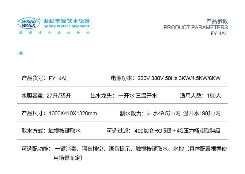 150人用開水溫開水節能飲水機觸摸型 型號:FY-4AL