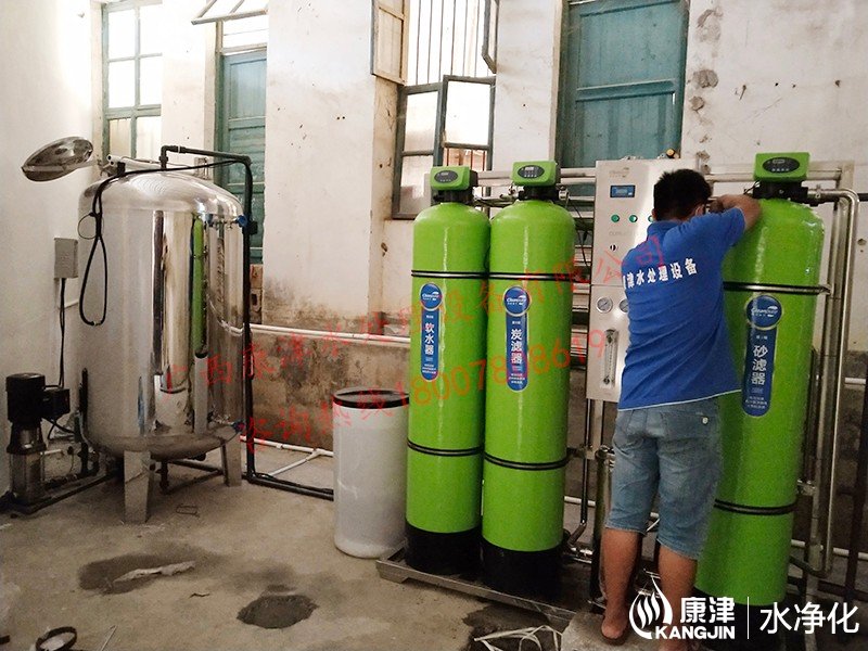 工藝流程:原水箱-原水泵-石英砂過濾器-活性炭過濾器-軟水器-精密過濾器-反滲透設備-凈水箱-變頻供水-管線機