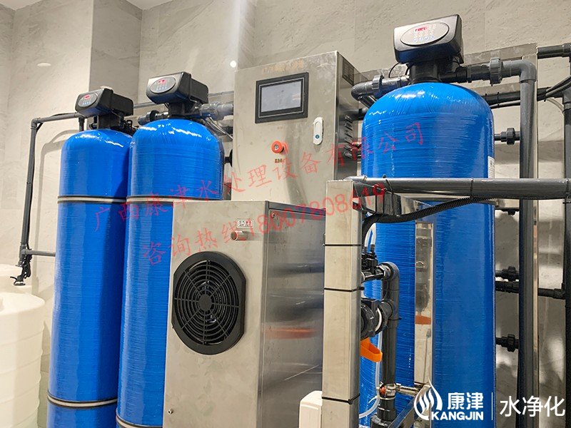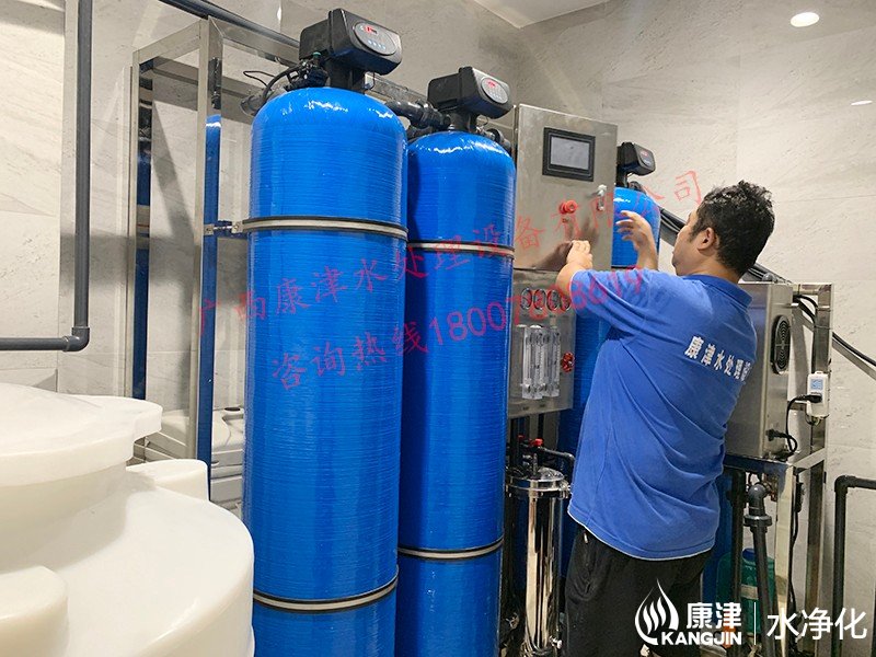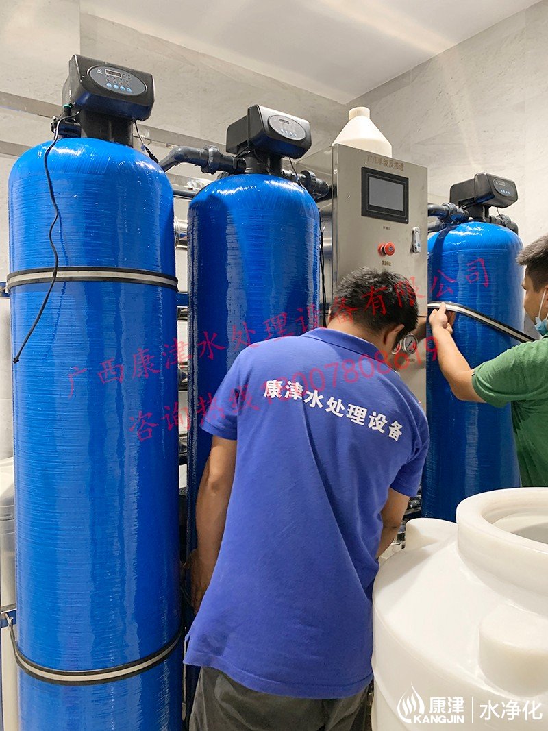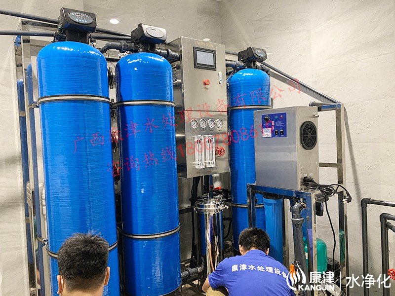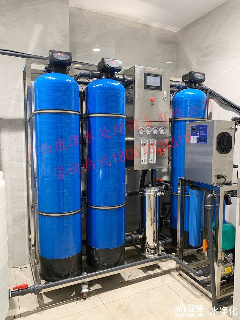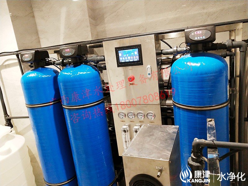 工藝流程:原水箱-原水泵-石英砂過濾器-活性炭過濾器-樹脂過濾器-精密過濾器-反滲透設備-軟水鹽-凈水箱-變頻供水回水殺菌系統-用水點