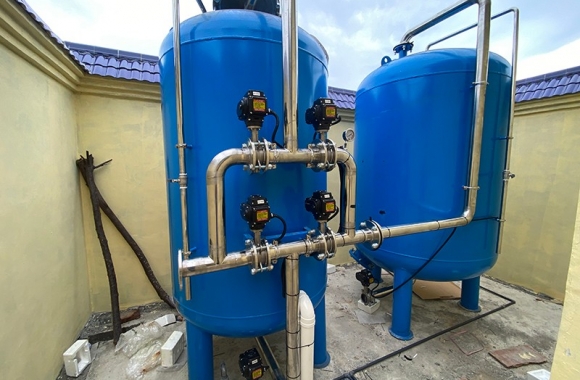 項目名稱:農村飲水安全鞏固提升工程 設備名稱:貴港市李村20噸壓力式一體化凈水設備 工藝流程:河水-絮凝加藥-沉淀過濾器-石英砂過濾器-二氧化氯消毒...