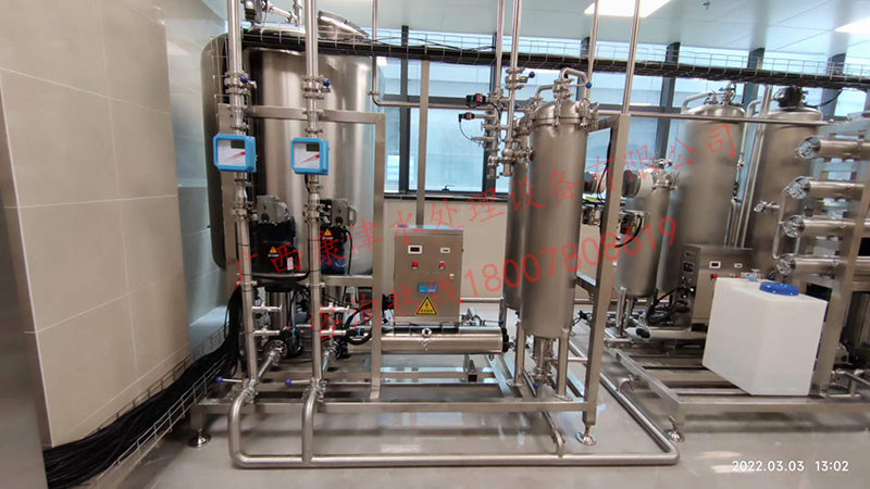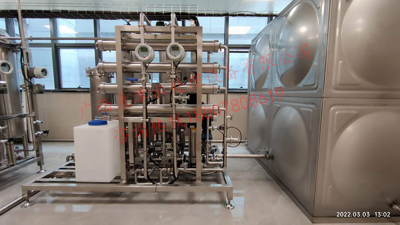 工藝流程:原水箱-原水泵-石英砂過濾器-活性炭過濾器-精密過濾器-紫外線殺菌器-增壓泵-反滲透膜組-加藥系統-無菌水箱-紫外線消毒殺菌器-除菌過濾器-變頻恒壓供水系統-用水點