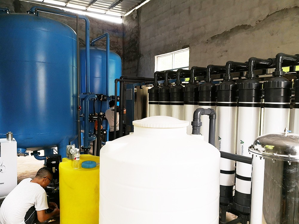超濾是利用超濾膜的微孔篩分機理,在壓力驅動下,將直徑為0.002-0.1μm之間的顆粒和雜質截留,去除懸浮物、膠體、蛋白質、微生物和大分子有機物。