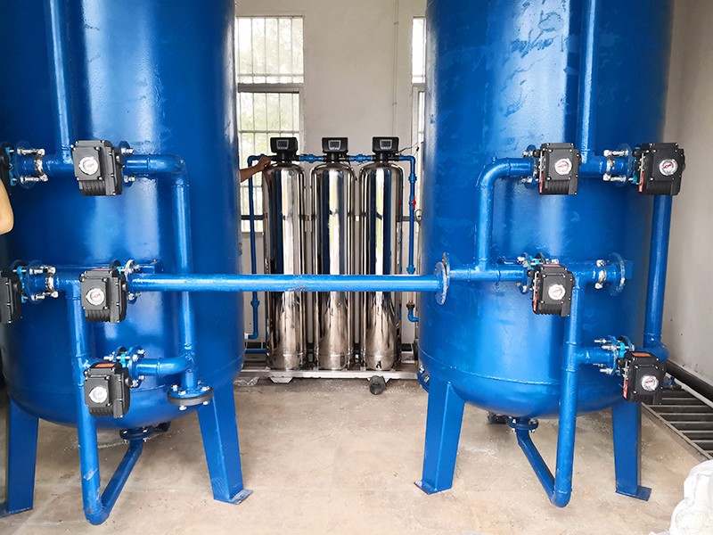 本方案主要針對原水為河水、地下水、自來水等地區,水源通常比較渾濁,水面漂浮臟東西、樹葉、水藻等,尤其在暴雨季節,水中泥沙量增加,雜質多等情況。因此利用填料來降低水中 濁度,截留除去水中懸浮物、有機物膠質顆粒,是給水凈化的重要水處理設備。康津水處理為根據實際用途情況制定以下解決方案。用水處理量每小時約10噸。