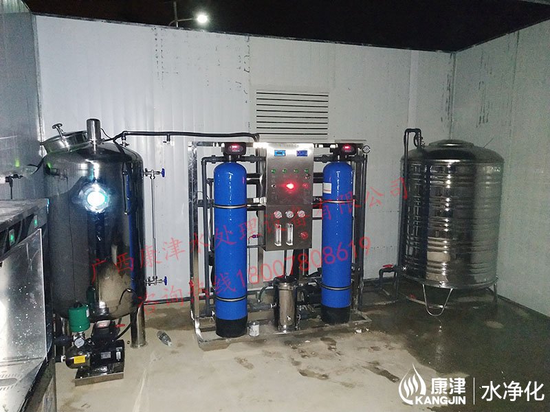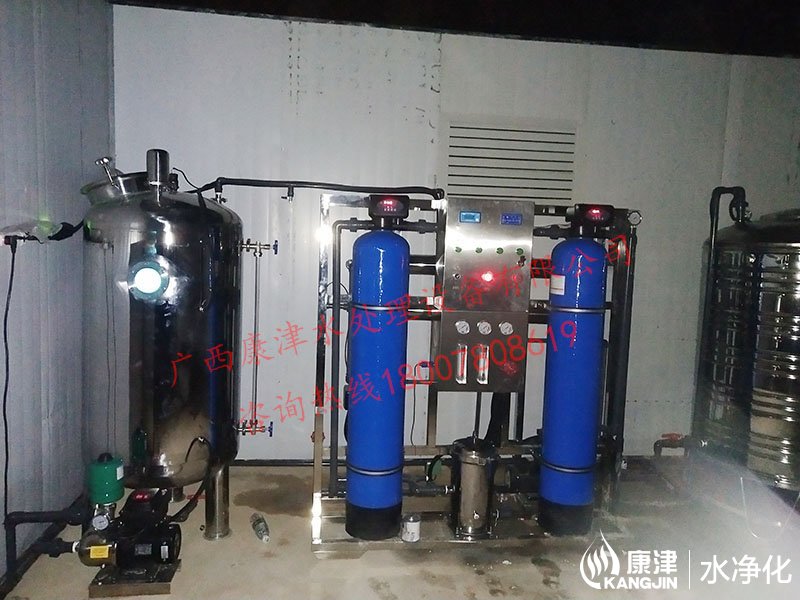 工藝流程:原水箱-原水泵-石英砂過濾器-活性炭過濾器-精密過濾器-反滲透設備-凈水箱-變頻供水-直飲機